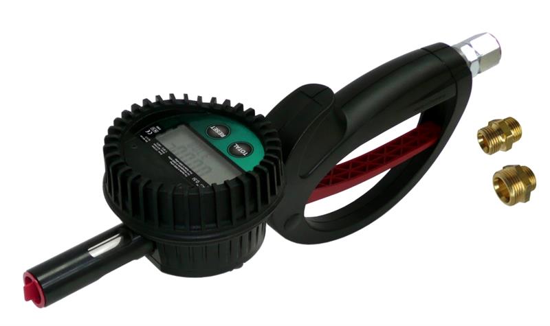 Rückstellbar, Digitalanzeige, max. Betriebsdruck 100 bar, 1 - 10 l/min., Messgenauigkeit ± 0.3% (8-2000 mPas) mit Doppelnippel R1/2" und R3/4" aussen, inkl. Vorprüfgebühr