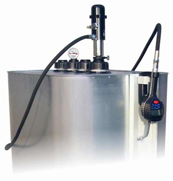 Ölförderpumpensystem pneuMATO 3 mit Druckübersetzung 1:3, 8 m Druckschlauch DN12 mit R1/2“ DKR Überwurfmutter zur einfachen Montage, Öl-Zählerpistole DIGIMET E30 Preset mit mit Mengenvorwahl und Motorenölauslauf, Saugrohr für 750/1000 l Tank mit Fussventil, Artikel ohne Tank