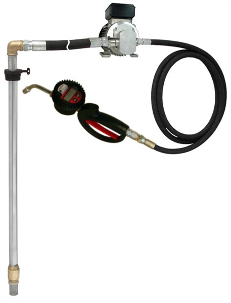 Elektro-Zahnradpumpe EP300, Stahl-Saugrohr für 1000 l Tank, 4 m Druckschlauch DN20 (Anschluss R 3/4" DKR), DIGIMET E35 Handdurchflussmengenzähler mit Auslauf Motorenöl