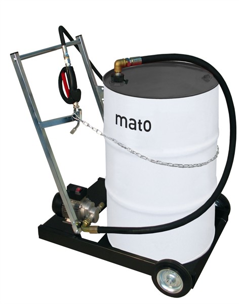 Elektro-Zahnradpumpe EP300, Stahlsaugrohr für 200 l Fass mit R2" Fassadapter inkl. Fussventil und Saugkorb, 4 m Druckschlauch DN20 mit DKR 3/4", stabilem Fahrwagen, schwarz lackiert mit 2 Festrollen und 2 Schwenkrolle mit Pistolenhalterung, Ölpistole Auslauf Motorenöl mit Tropfschutz.