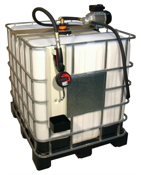 Elektro-Zahnradpumpe EP100, Montagebrücke inkl. 2" TrisSure-Adapter aussen auf 2" BSP innen, Stahlsaugrohr für 1000 l IBC-Container inkl. Fussventil und Saugkorb, 4 m Druckschlauch DN12, Tropfschale mit Halterung