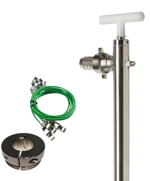 INOX Liftpumpe Set mit PTFE Dichtungen und Schlauchanschluss DN20 für 200 l-Fass