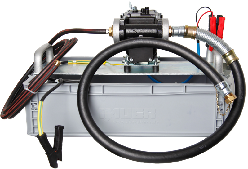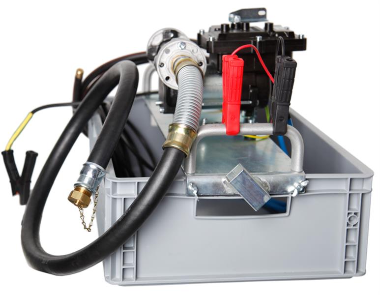 Zum Absaugen von falsch getanktem Treibstoff. Selbstansaugende, explosionsgeschützte Flügelzellenpumpe mit eingebauten Bypassventil und thermischen Schutzschalter. Augerüstet mit: Plastikkiste, höhe 14 cm, benzinfest. Pumpe auf Support montiert. Ansaugschläuche 3 m, mit Blindstopfen (damit keine Flüssigkeit austritt). Stromkabel 3 m mit vollisolierte Zangen für Abgriff ab Batterie. Ausflussschlauch 1.5 m mit Knickfeder (verhindert Abknicken des Schlauches), mit Abschlussdeckel (damit keine Flüssigkeit austritt). Kabel 2 m für Potentialausgleich. Bedienungshebel ein/aus.