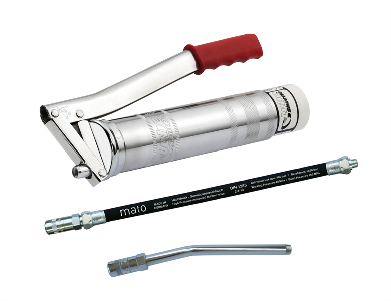 Lube-Shuttle Hebelfettpresse MATO verzinkt - 1/8", mit Schlauch RH30-C und Düsenrohr