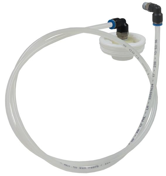 Das System, geeignet für alle MATO Elektro-Zahnradpumpen ab Bj. 6/2018, sorgt im Stillstand der Pumpen für eine Druckentlastung und bei Inbetriebnahme oder Fasswechsel für eine Entlüftung des Systems. Während der Förderung wird über einen Rücklauf Öl in den Vorratsbehälter (Tank / Fass) zurück geführt. Es ist daher unbedingt erforderlich, den Rücklauf-Schlauch (1,5 m) in den Vorratstank zurück zu führen.