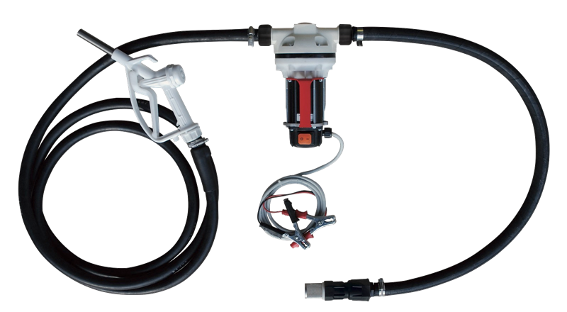 Für AdBlue® und Wasser, mit 2 m Anschlusskabel mit Batterieklemmen, 6 m EPDM-Abgabeschlauch DN20, Manuelle-Zapfpisole aus Kunststoff, 1,5 m EPDM-Ansaugschlauch mit Fussventil.
