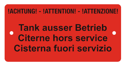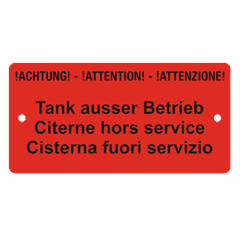 Plaquette en aluminium, 100 x 50 mm "Citerne hors service"