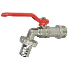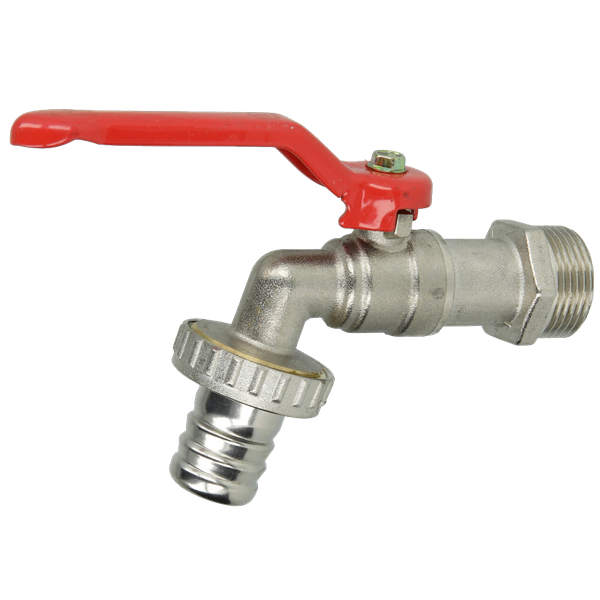 Robinet à bille laiton nickelé ¾" mâle avec raccord de tuyau, 10 bar