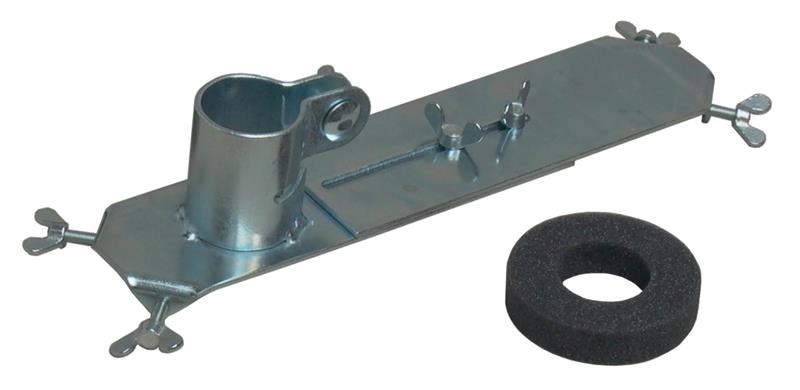 Sostegno pompa in acciaio zincato per pompe di travaso per bidoni incluso manicotto con guarnizione a schiuma contro la fuoriuscita.