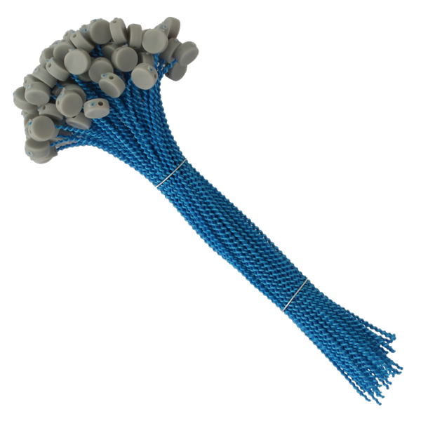 Sigilli di sicurezza in plastica 9 mm grigi, filo blu 150 mm, 100 pezzi